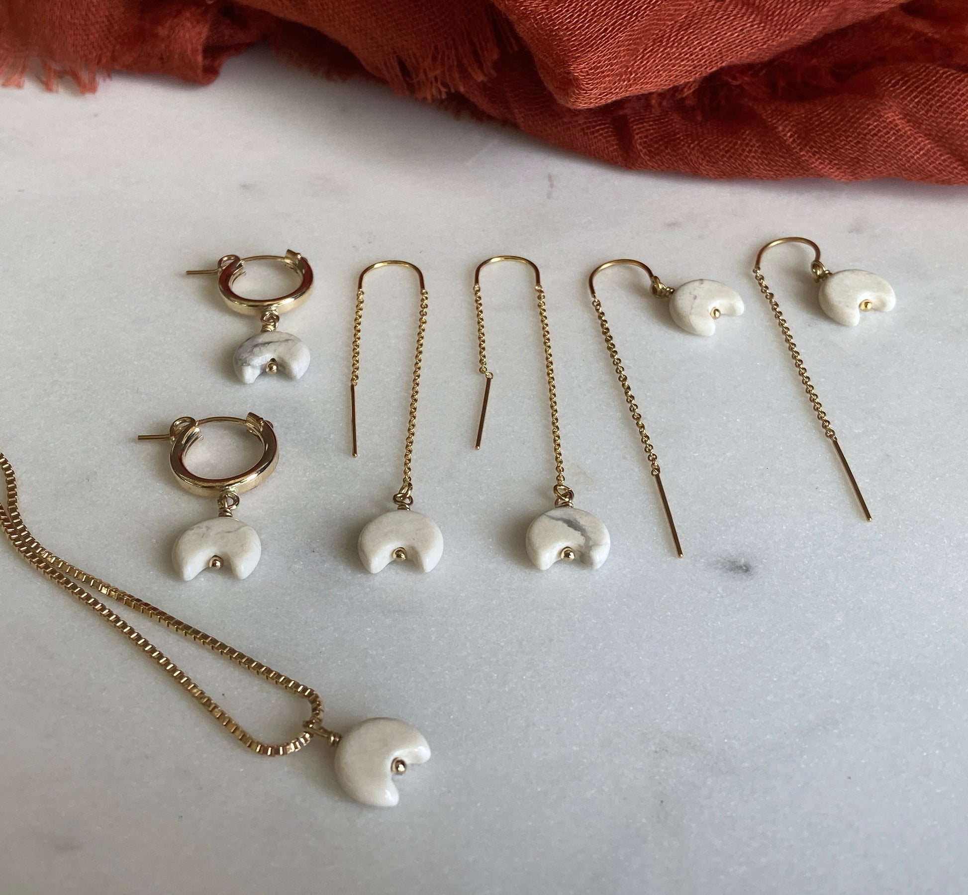 Please note: Moons may vary in color ranging from all white to some with streaks. This is naturally occurring from the stone and cannot be changed, making each pair truly unique.