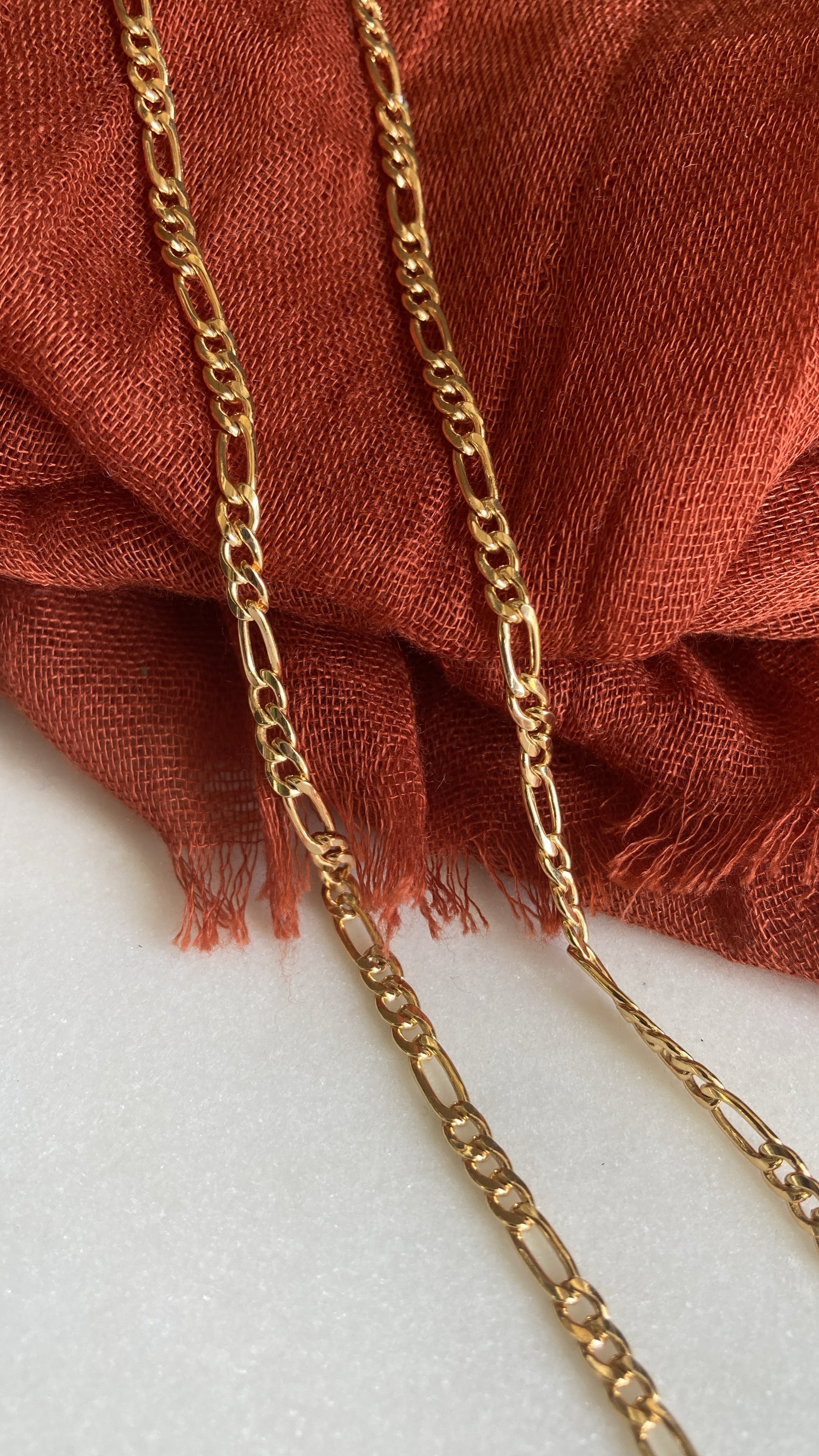 Your choice of three different types of yellow 14k gold-filled chain: