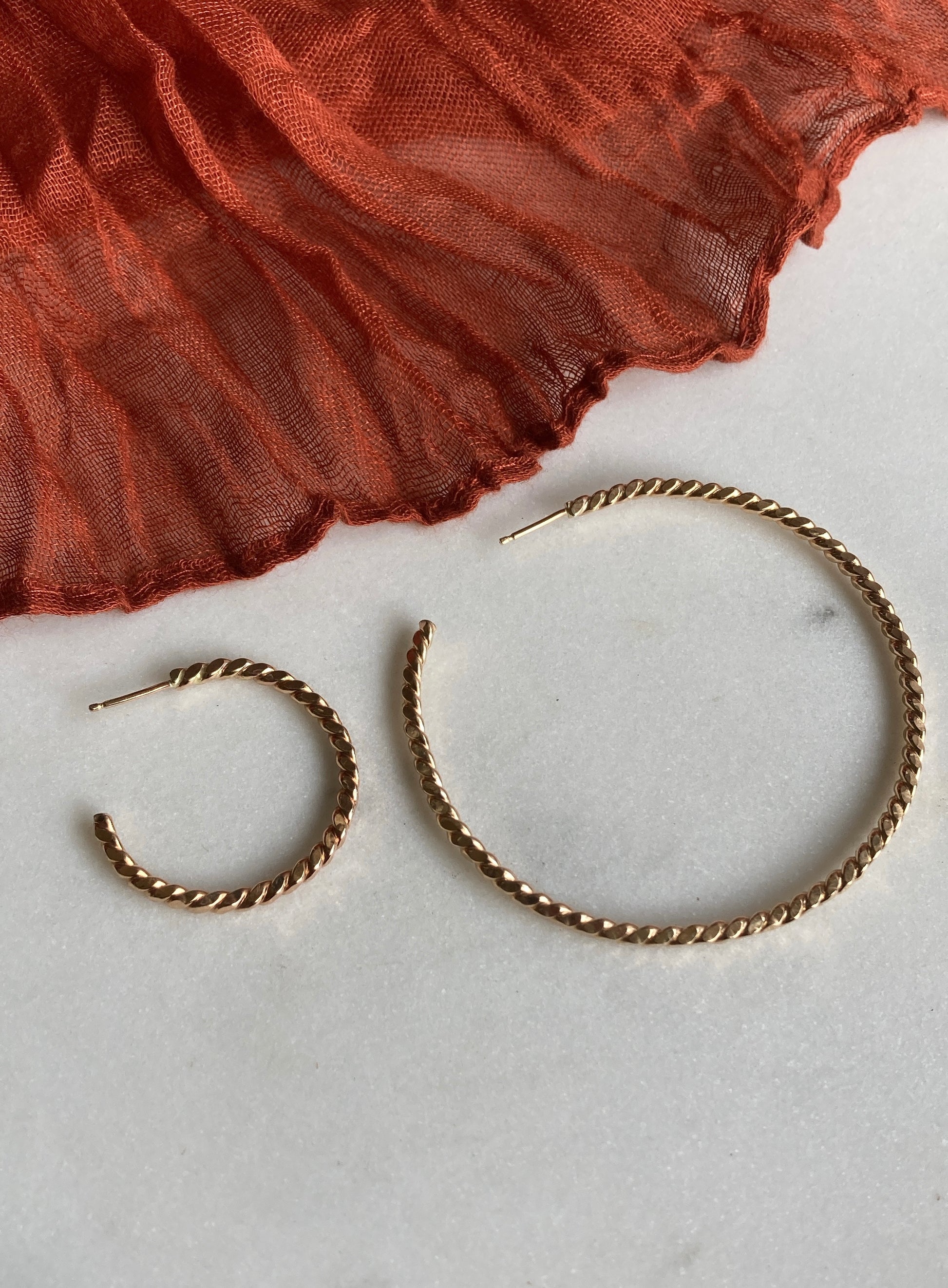 Inspired by knowing where we come from and learning about our culture, the "Roots Hoops" represent deepening our connection with ourselves by almost locking the earrings into your ears. Every pair is hammered to strengthen not only the wire, but the connection for the wearer.